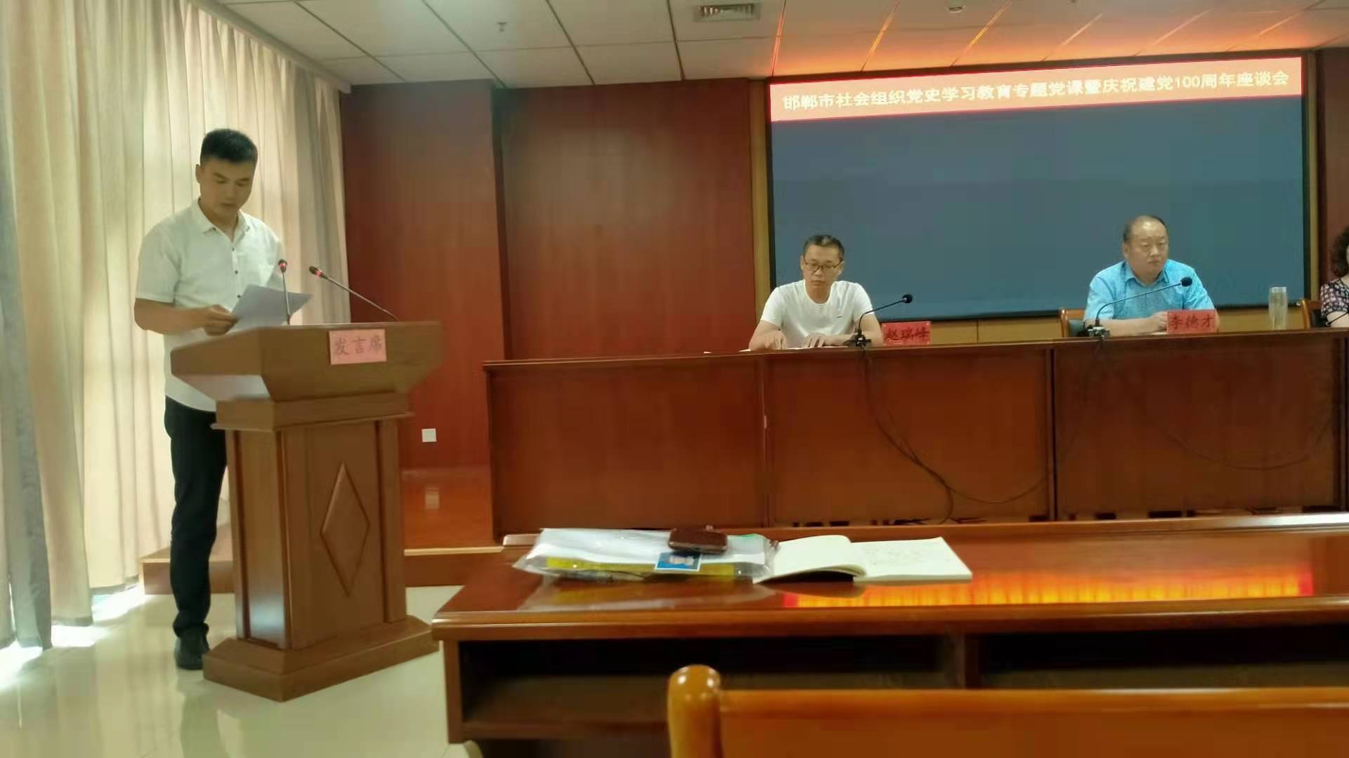 623,邯鄲市社會(huì)組織黨委在邯鄲市民政局第一會(huì)議室舉辦黨史學(xué)習(xí)教育專題黨課暨慶祝建黨100周年座談會(huì),會(huì)上還舉行了“光榮在黨50年”紀(jì)念章頒發(fā)和預(yù)備黨員入黨宣誓儀式。邯鄲市翻譯學(xué)會(huì)副秘書長(zhǎng)(邯鄲市譯林翻譯公司法定代表人)李振峰作為2020年度新發(fā)展黨員代表在大會(huì)上作表態(tài)發(fā)言,表達(dá)了永遠(yuǎn)聽黨話、跟黨走的信心和決心!